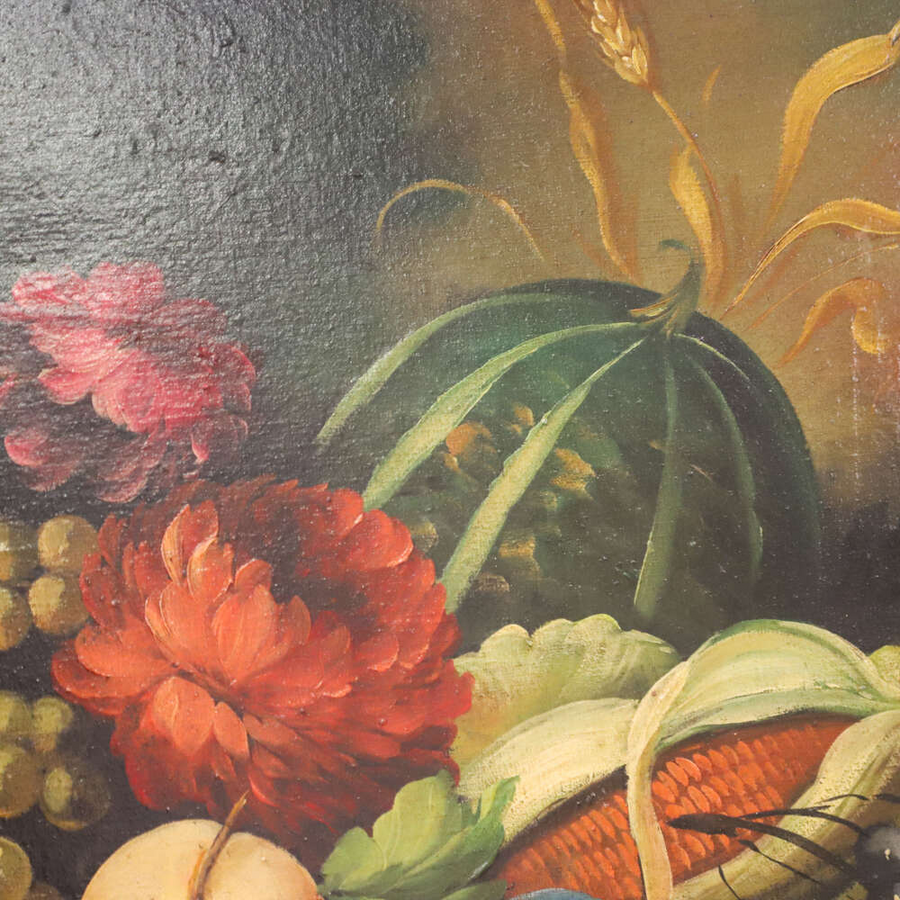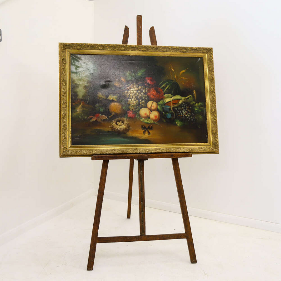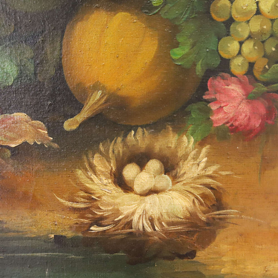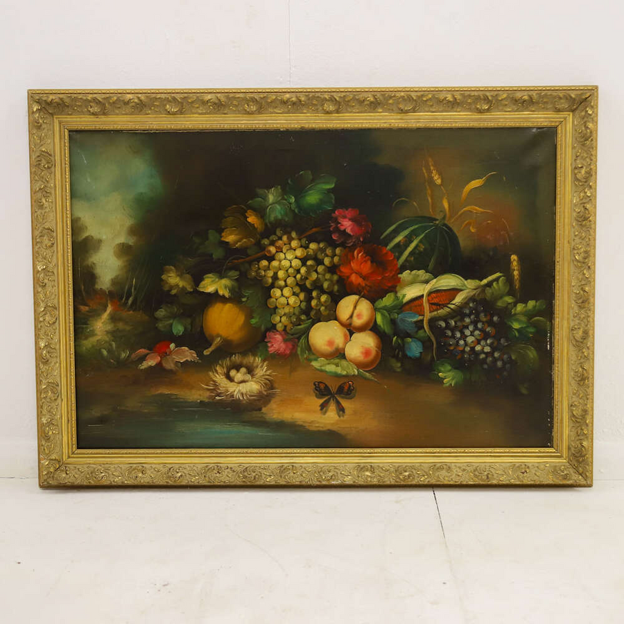 20th century Italian oil on canvas still life painting of fruit in good condition apart from a couple of marks. Size Height 78cm Width 110cm