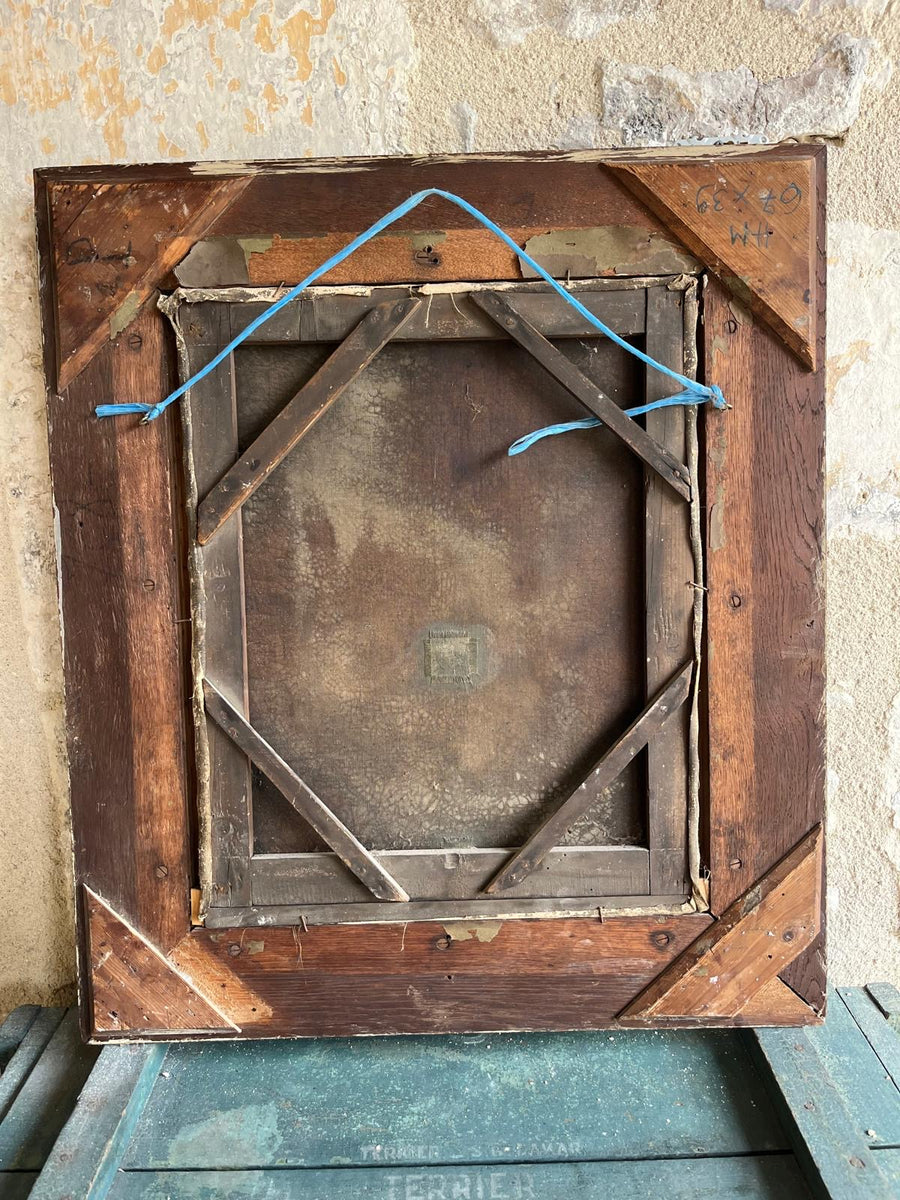 18th century oil on canvas of the immaculate conception of the virgin in Oak frame